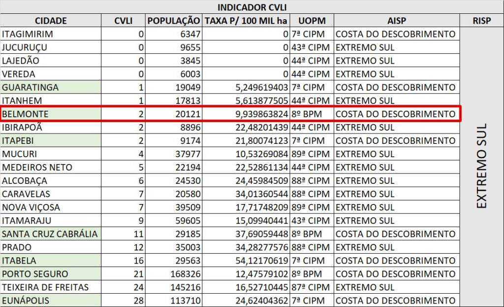 Os bons resultados podem melhorar ainda mais com os esforços recentes da gestão municipal, que tem investido fortemente em segurança pública. No último mês, a Prefeitura de Belmonte, sob a liderança do Prefeito Iêdo Elias, criou a Secretaria Municipal de Segurança Pública e Cidadania, liderada pelo Capitão Ricardo Araújo. A nova secretaria tem como missão integrar as ações municipais com as forças de segurança estaduais, além de estudar a criação da Guarda Civil Municipal para reforçar o combate à criminalidade.
