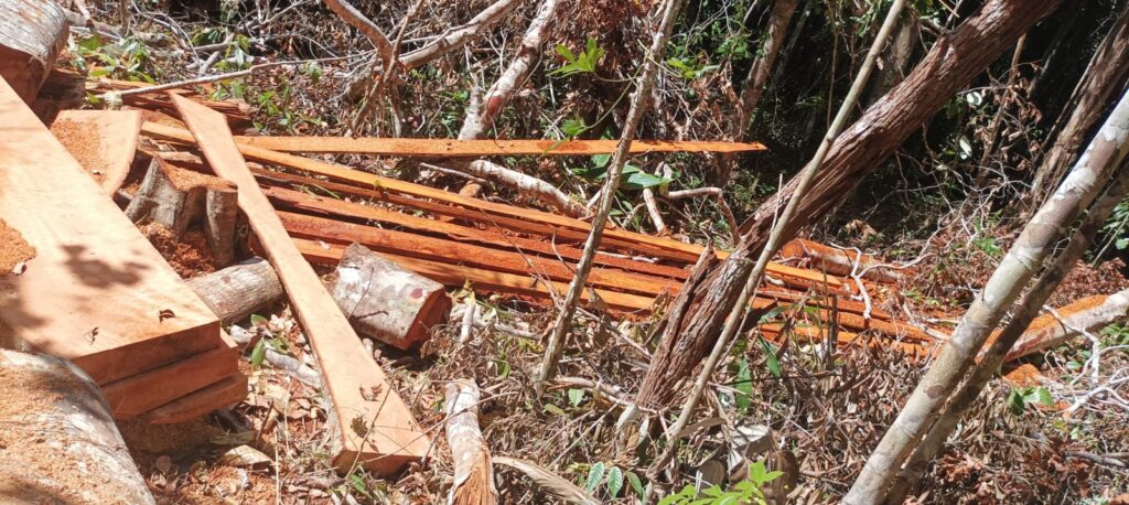 No momento da abordagem, os homens afirmaram que a madeira seria usada para a reforma de pontes no município. Eles ainda informaram que a maior parte do material já havia sido retirada do local pelo servidor da prefeitura, deixando para trás apenas 16 pranchões, o equivalente a cerca de meio metro cúbico de madeira. Quando questionados sobre as licenças ambientais, eles disseram que existiam, mas não estavam com eles, e a motosserra utilizada também não possuía a documentação necessária.