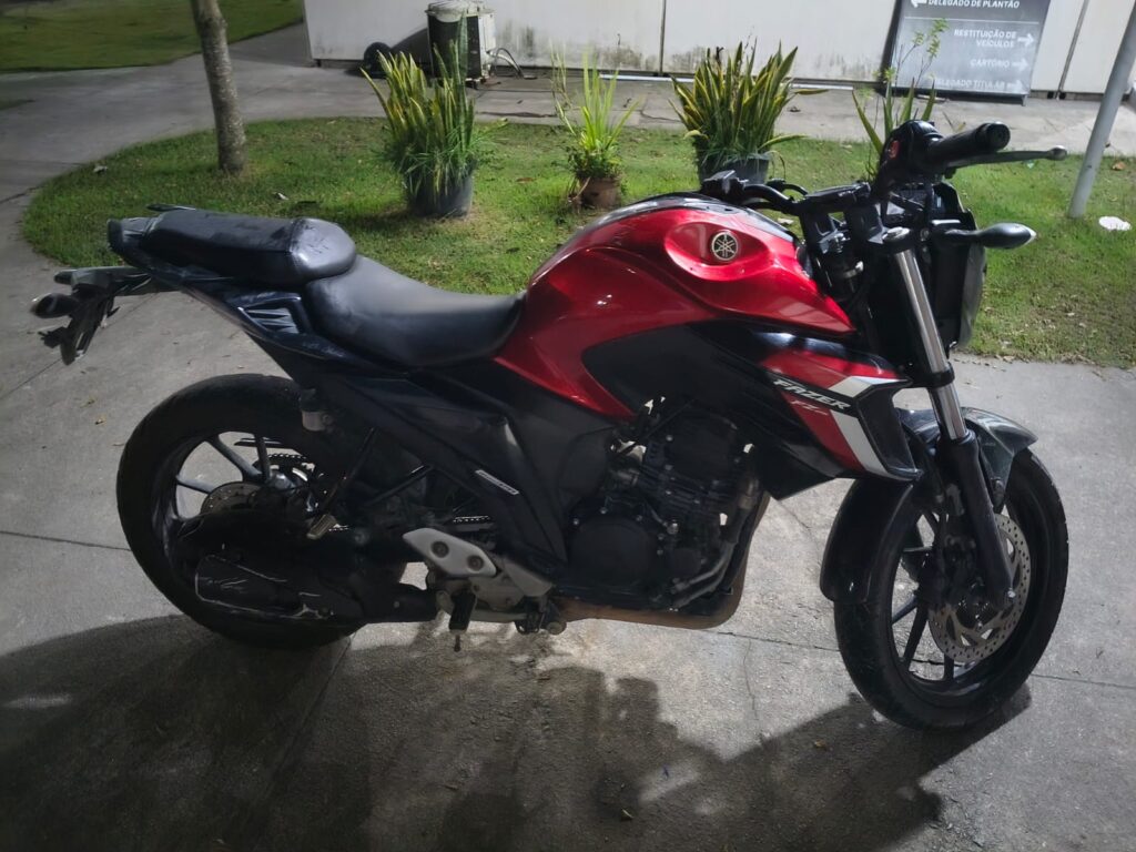 Simultaneamente, ao realizarem a consulta veicular pelo chassi da motocicleta abandonada, foi constatado que a mesma possuía restrição de Roubo/Furto. O veículo foi identificado pela placa original SKC-2J75. Diante dos fatos, o suspeito, a motocicleta recuperada e todo o material ilícito apreendido foram encaminhados para a Delegacia Territorial para a adoção das medidas cabíveis.