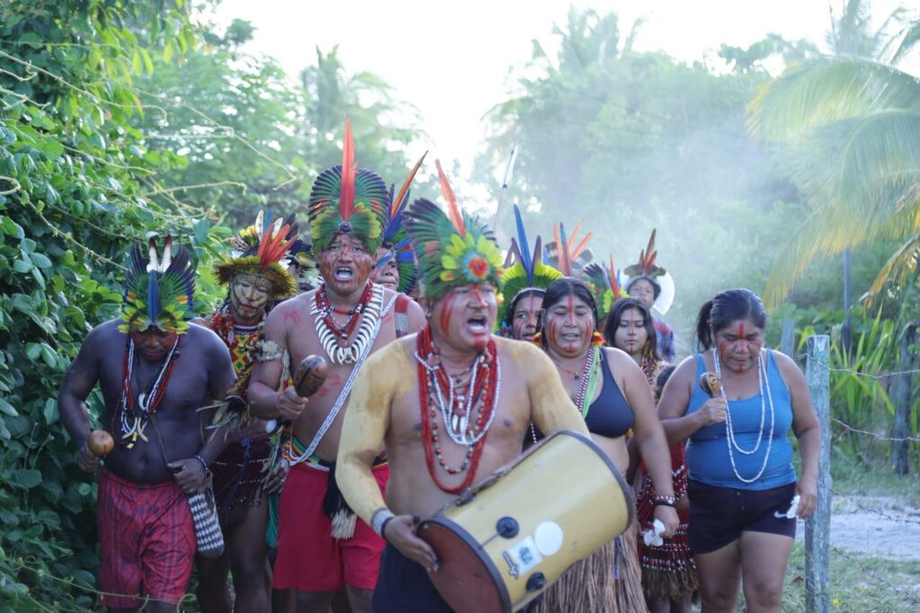 A comunidade já se organizava para o tradicional ritual da “busca do dia” quando a notícia do falecimento se espalhou. Em vez de cancelar a cerimônia, os Pataxó decidiram manter o essencial. Com corpos pintados e cantos lamentosos que cortavam o ar úmido da madrugada, o povo caminhou do centro da aldeia até a praia.