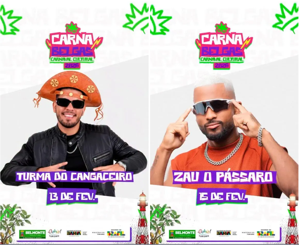 Carnaval de Belmonte: Zau O Pássaro e Turma do Cangaceiro são confirmados na folia de 2026.