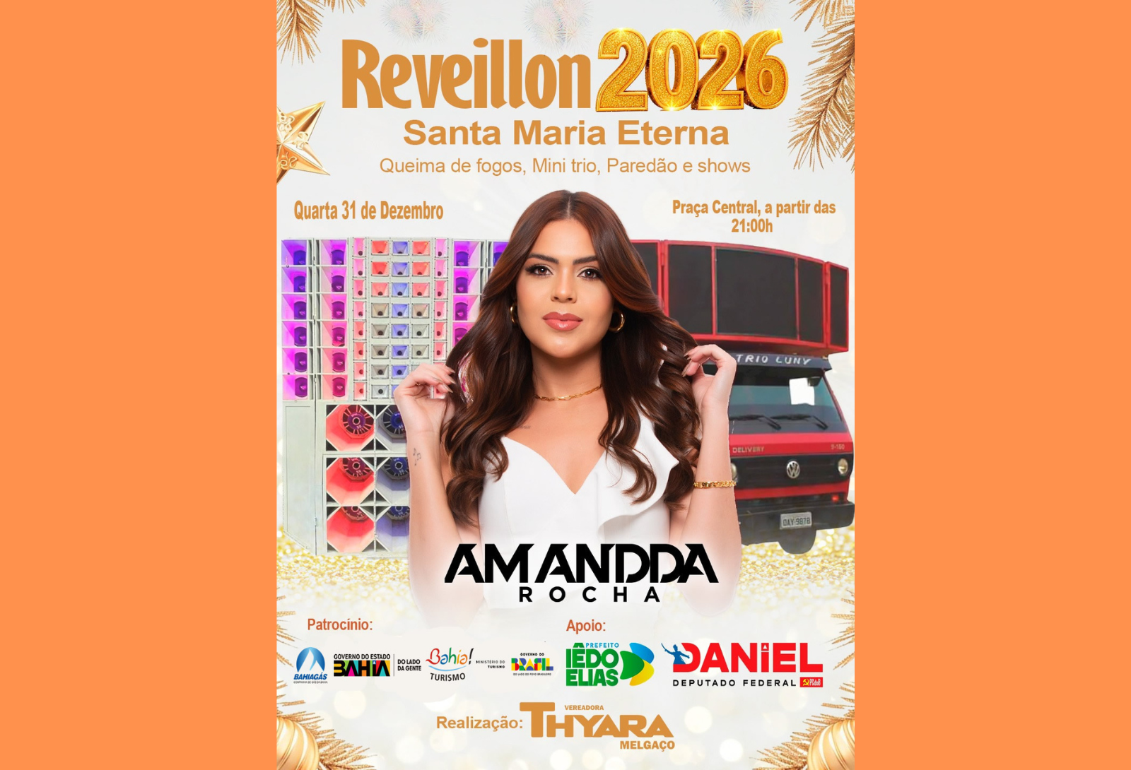 Amandda Rocha convida toda a região para o grande Réveillon 2026 em Santa Maria Eterna.