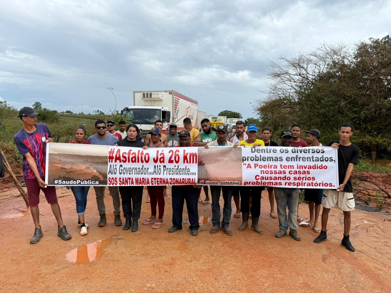 Revoltados com o descaso, moradores de Santa Maria Eterna fecham desvio da BR-101 e exigem providências.