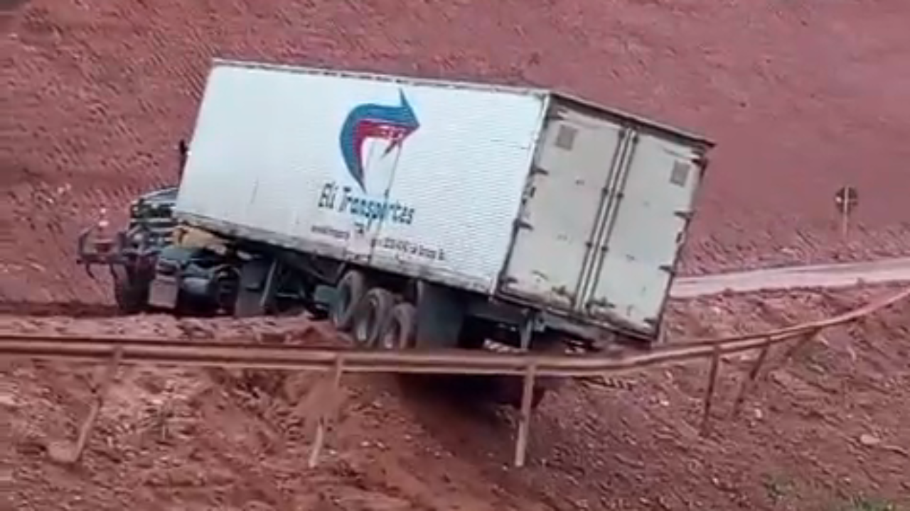 Caos no desvio da BR-101: Carreta atravessada em Santa Maria Eterna prejudica tráfego e gera revolta de moradores.