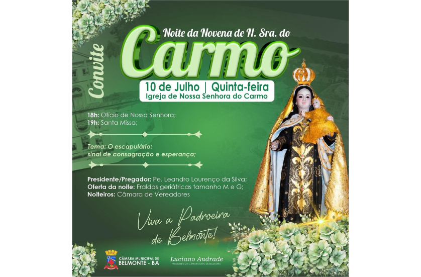 Câmara de Vereadores de Belmonte Apoia Novena em Homenagem a Nossa Senhora do Carmo.