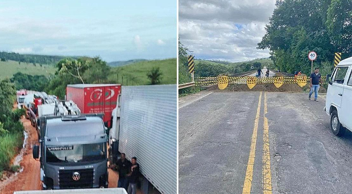 Interdição da ponte sobre o Rio Jequitinhonha causa transtornos e revolta motoristas na BR-101, em Itapebi.