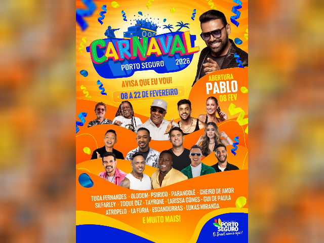 “Avisa que eu vou!”: Prefeitura de Porto Seguro lança programação oficial do Carnaval 2026 com promessa de edição histórica.