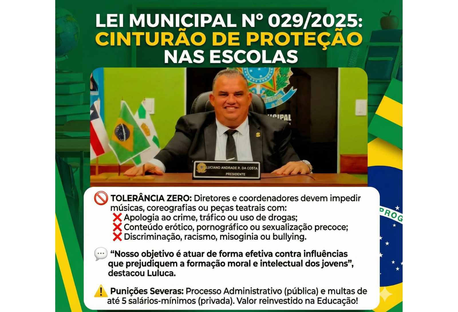 Belmonte: Lei de autoria de Luluca da Ambulância blinda escolas contra conteúdos impróprios no ano letivo de 2026.