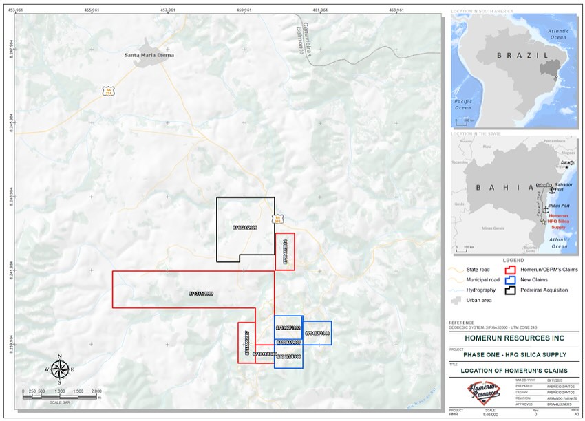 Homerun Resources conclui aquisição de direitos totais da lavra de Sílica em Santa Maria Eterna.