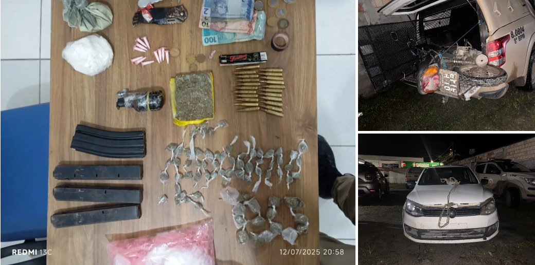 8º BPM apreende drogas, granada e munições de fuzil em confronto com marginais em Barrolândia.