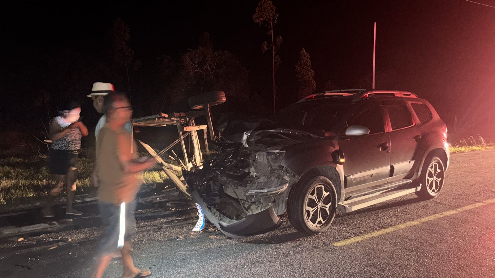 Acidente em Belmonte: Duster atinge carroça na BA-001, deixando dois feridos.