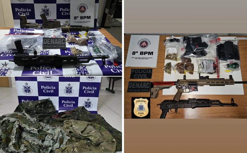 Forças de segurança apreendem arsenal e drogas em Arraial d’Ajuda, Porto Seguro