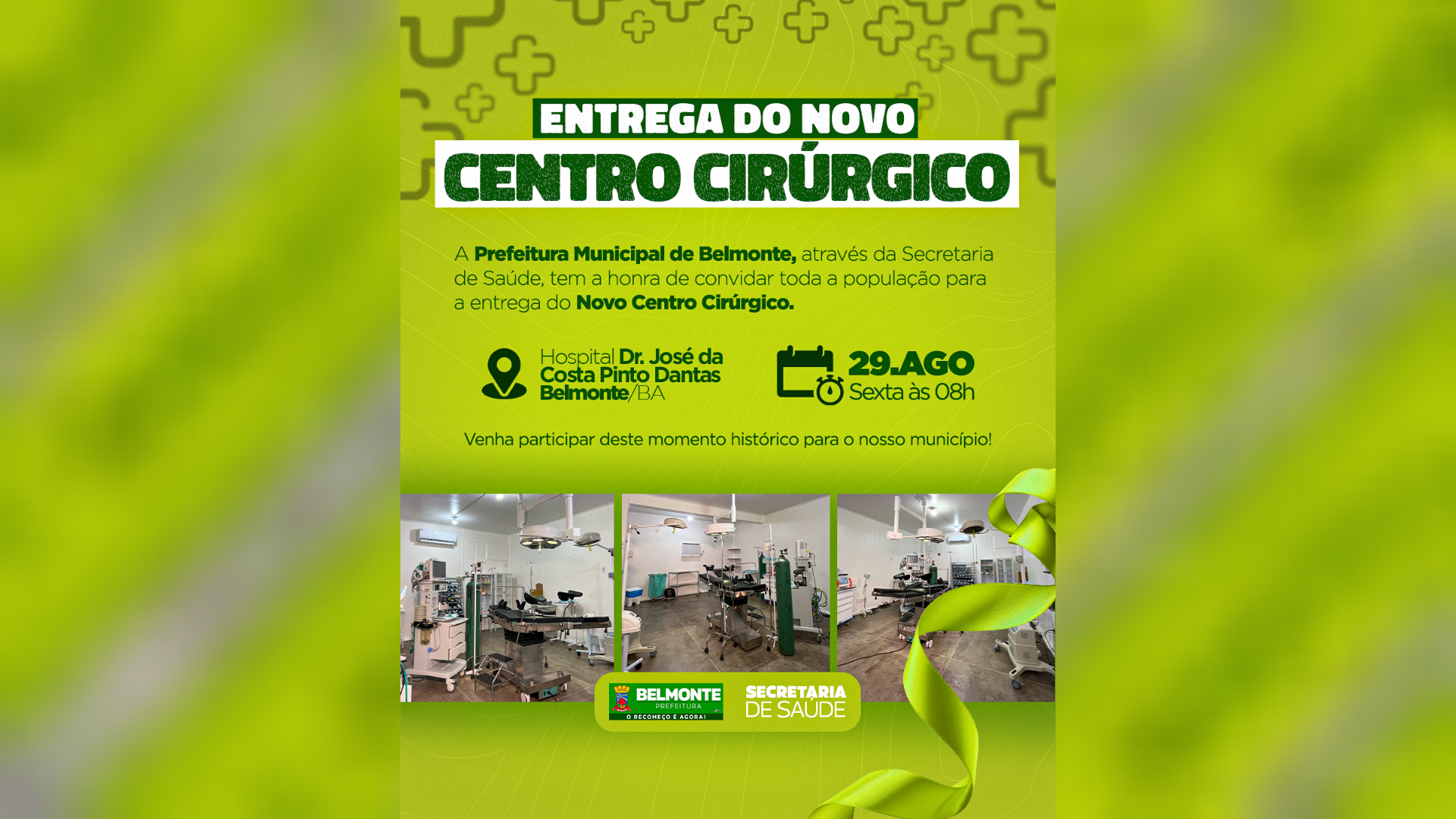 Prefeitura de Belmonte inaugura novo centro cirúrgico no Hospital Municipal.